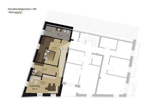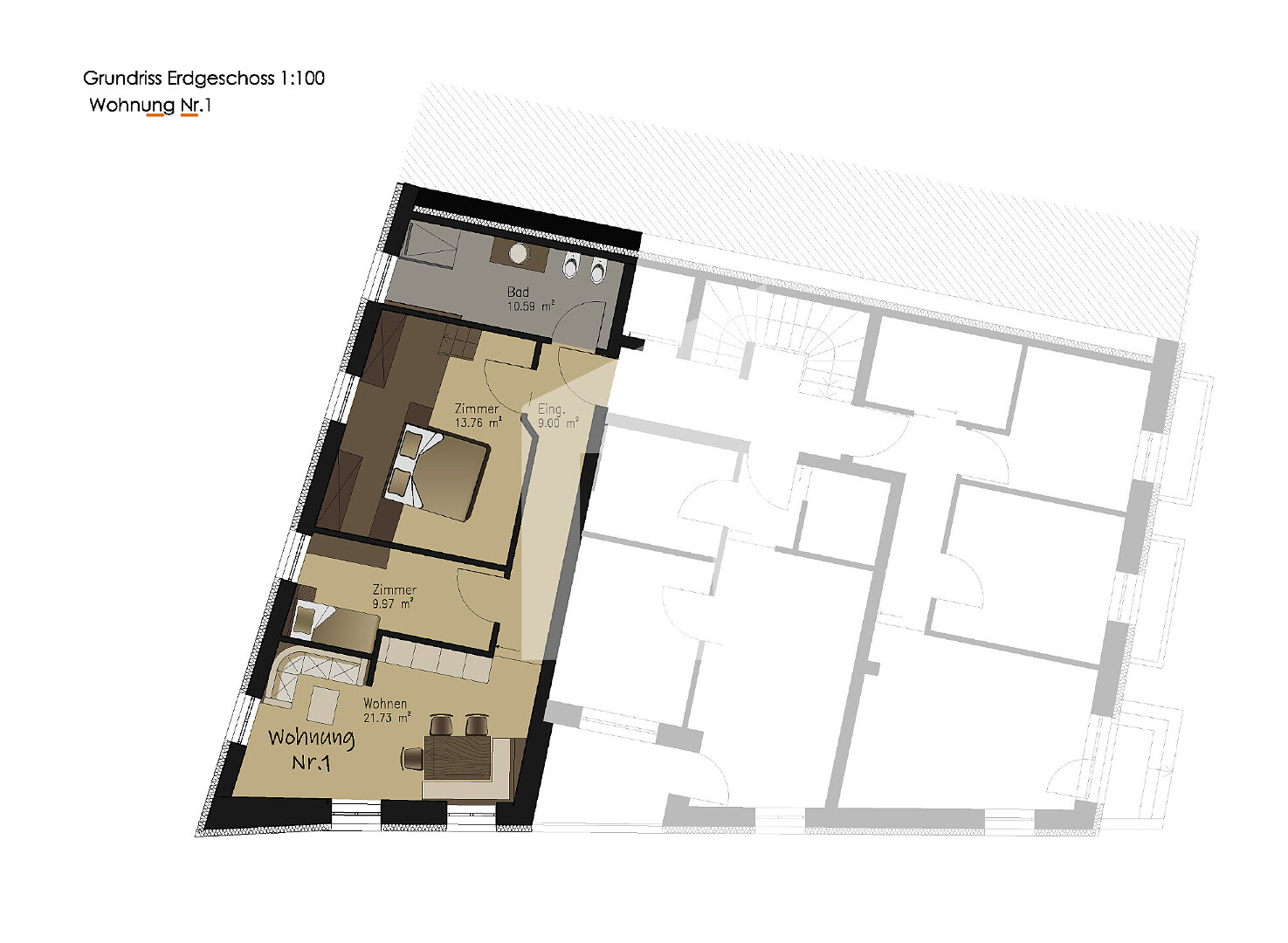 2 Schlafzimmer, großes Bad, Wohnküche, Eingangsbereich